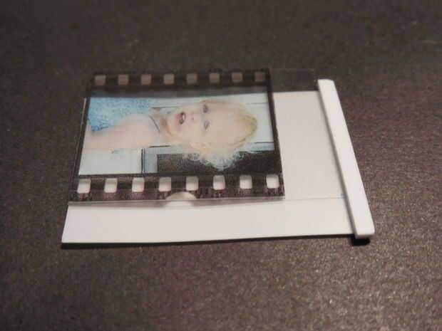 Coloque el pedazo de cinta negra en la cara claro, sólo para cubrir el área que no tiene ninguna imagen.