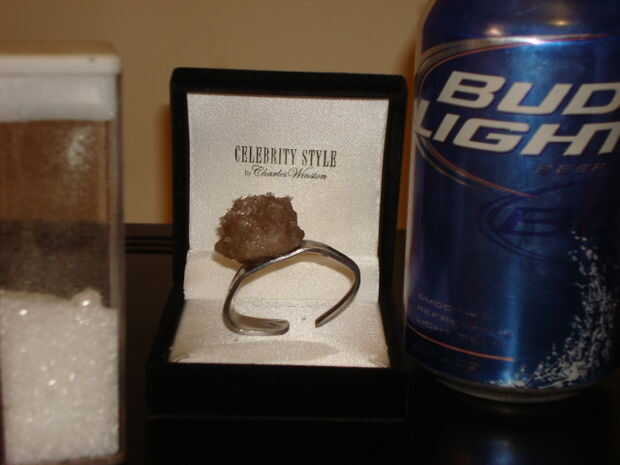 Es una piedra de cuarzo. Brilla cuando está muy limpia. No pude conseguir que la chispa de la fotografía así que hice un truco estilo redneck. Había espolvoreado azúcar brillo sobre el diamante e hizo el truco.