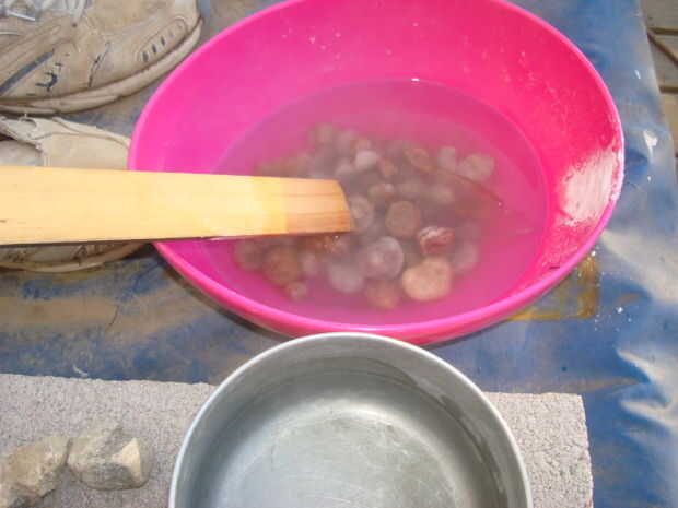 Enjuague diamantes con agua limpia.