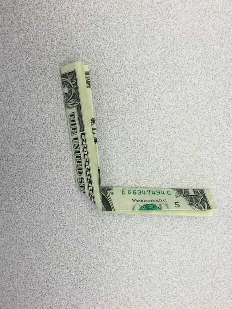Paso 1: Veces el dólar en medio entonces otra vez la doble por la mitad.Paso 2: Luego doblar en forma de L por lo que es mirar torcido.Paso 3: Luego doblar la parte inferior de la forma de L en la mitad por lo que parece una T.Paso 4: Doblar las dos