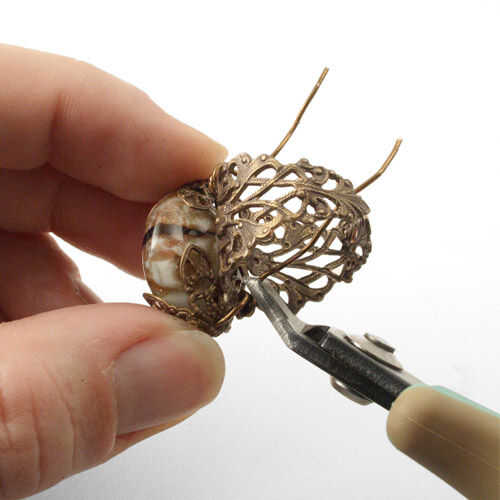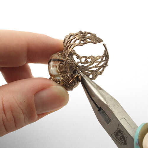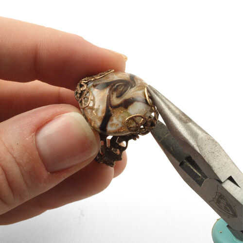 9. use pinzas de punta de cadena a tuck en alambre termina para crear una superficie lisa dentro del ring.