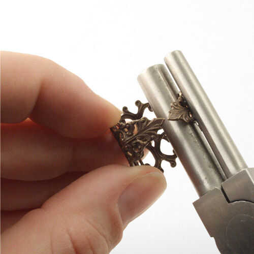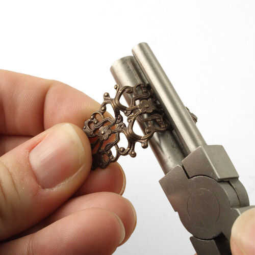 1. Coloque el lado de cilindro de 8,5 mm de la fianza haciendo pinzas en la parte posterior (lado rugoso) de filigrana para empezar a formar una cara en forma de anillo.