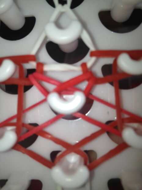 Paso 1: fuentes de 1. telar de arco iris2. crochet gancho telar gancho o arco iris3. bandas de goma4. C clip o clip de sPaso 2: Cómo empezar Tomar tus bandas claro y colocarlos donde están en la foto.Paso 3: Hacer el efecto de la roca del caramelo En