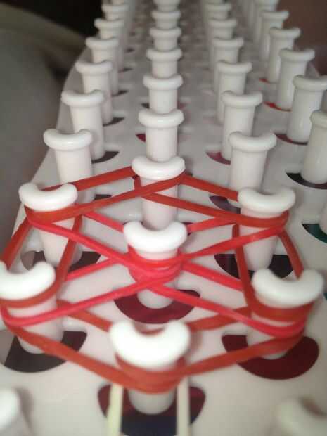 Cómo hacer pulseras de telar del arco iris o los anillos utilizando el patrón de diamante triple