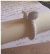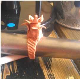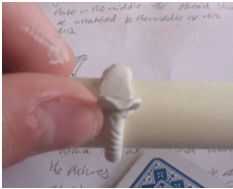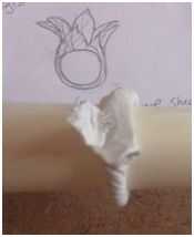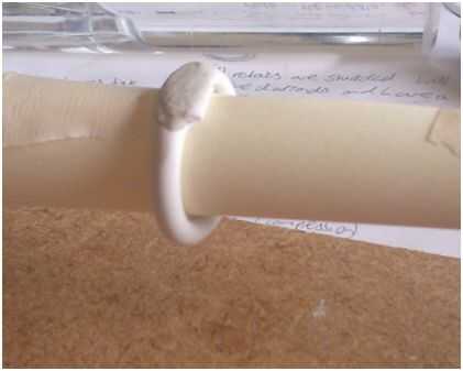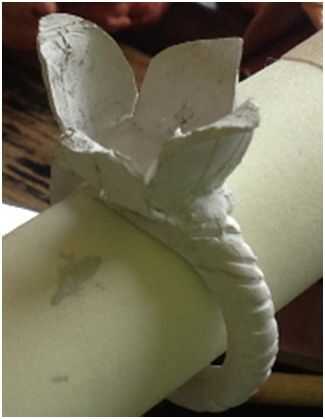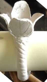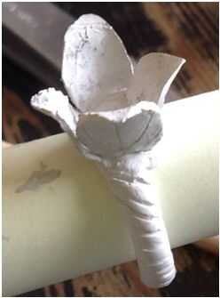 5) a continuación tome el cilindro que es ligeramente más grande que el diámetro del dedo (la arcilla de metal se reduce en un 10%) y la arcilla alrededor del cilindro del rodillo y enlace de los dos extremos en la parte superior por aplastarlos juntos que pega y proporciona una plataforma para las hojas que se unirá.