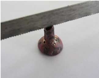 Una vez que esto ha sido apropiadamente despedido y pintado ranura las piernas del titular del pétalo en el holes.now perforado pequeño dos para terminar le tendrá que vio una tira hacia abajo el centro de la parte inferior del tallo de unos 3mm.