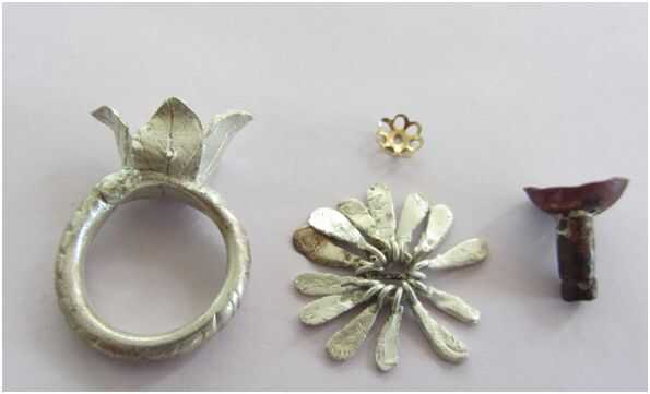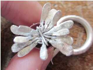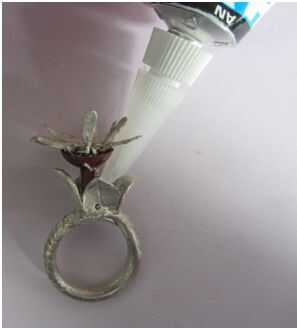 La etapa final es a su grano del latón en la parte superior del anillo que agrega un poco de interés a la flor.