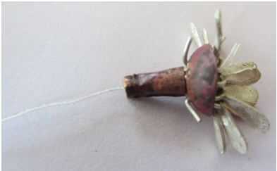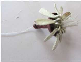3) como se muestra en las fotos el hilo a través del tubo de alimentación para que los extremos están saliendo de la parte de la flor. puede que necesite utilizar su pin para atraer a los bits de salida