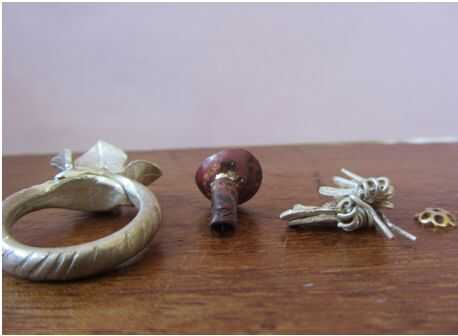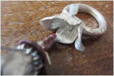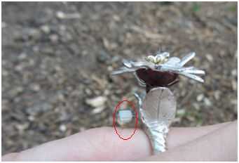 6 siguiente línea la base de la espiga con pegamento y se adhieren a la parte inferior del anillo de manera que permite a la madre a ser entre el eje de alimentación a través de las dos tiras tienes sawed.leave para secar.