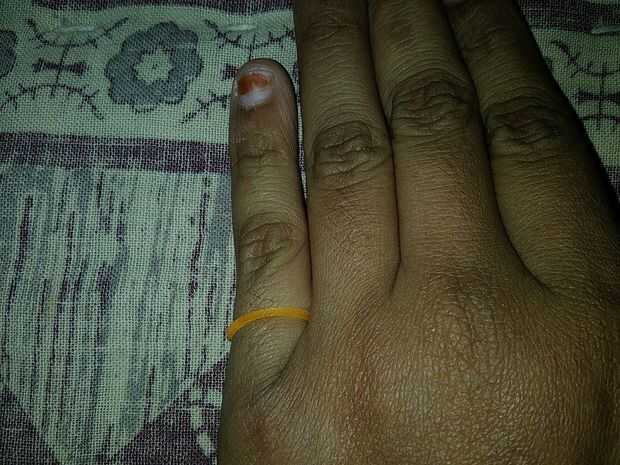 Tome una banda de goma y el desgaste en los dedos.