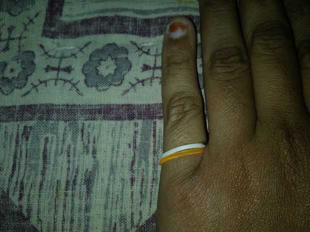 Goma segunda toma y desgaste en el dedo.