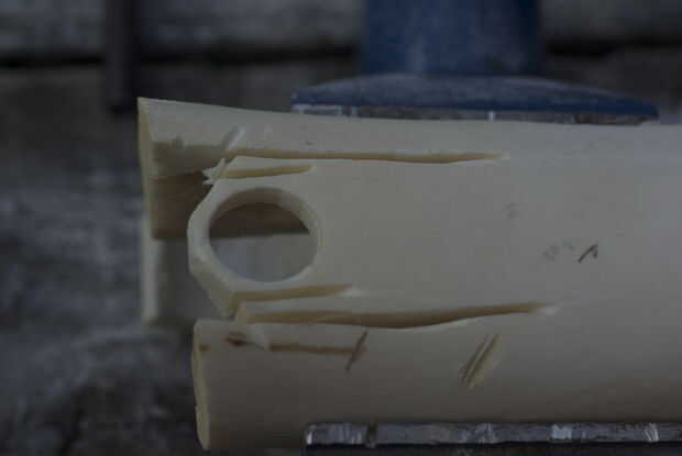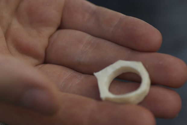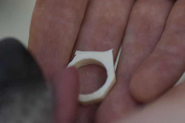 hice mi anillo de nueva centavos, derretido abajo y fundido en un molde negativo con una forma positiva hecha sobre una impresora 3d de la arena, siguiente usé una dremel para tallar un agujero que cabría las vértebras de una serpiente de cascabel de