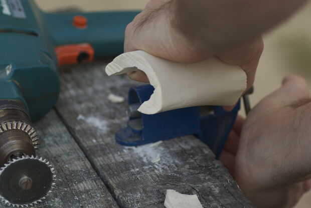 un par de días atrás me estaba haciendo un anillo de hueso y tuve un pequeño pedazo de hueso sobrante. Con eso hice un pequeño colgante de Triquetra para mi novia. Como de costumbre, he utilizado herramientas simples que cualquiera puede tener en cas