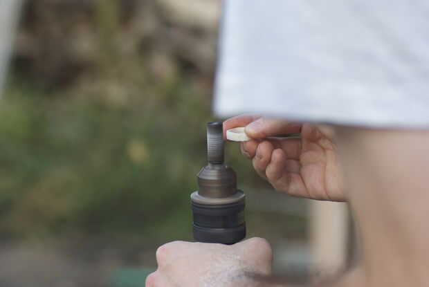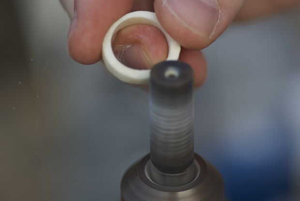Sosteniendo el taladro hacia arriba y usando la broca de rascado, forma el anillo.