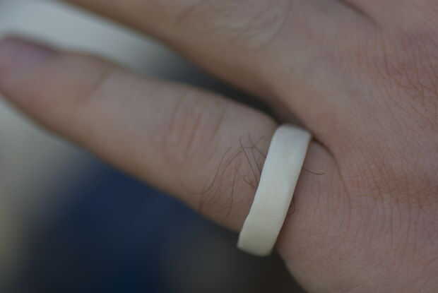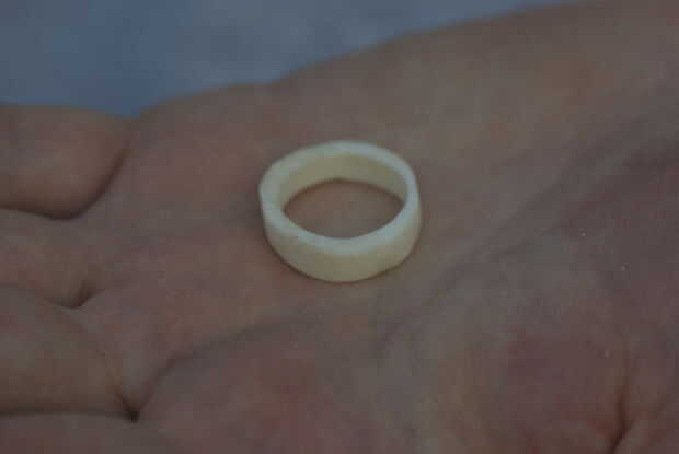 Yo quería que fuera un anillo de banda ancha, un poco grueso por lo que pude grabar. Lamentablemente con los cortes ásperos hice demasiado fina en un lado.