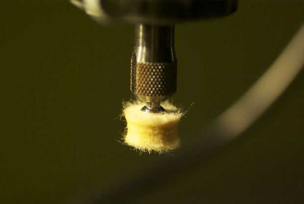 Limpiar asperezas archivé lo un poco con un simple archivo. Entonces pulida con una pulidora de fieltro.