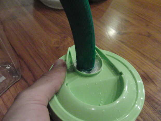Pegamento el otro extremo que es manguera en la tapa del contenedor utilizando un montón de pegamento caliente: D... pero en serio, ser conservadora con usted es pegamento caliente.