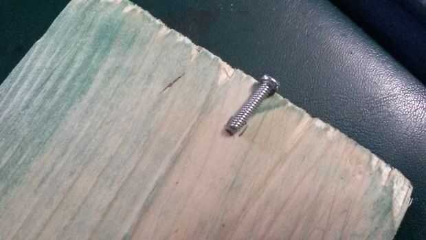 Marque la longitud de su perno en el extremo de la madera. Usé un 1/2" longitud/talla 4-40.