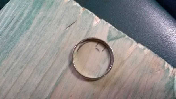 Rastrear el interior de un anillo personal para obtener una curva apropiada para el dedo. Mina localizar justo por encima de la parte inferior de la marca de bolt con la suposición de que todo lo que pongo en última instancia bajo el perno empuje lo suficiente para evitar chocar contra mi dedo.