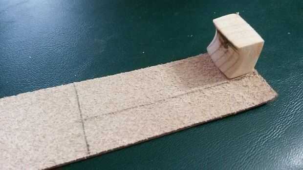 Marcar las líneas de corte en la parte posterior de la piel utilizando un bloque de madera como guía para la longitud y anchura.