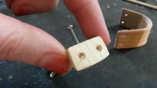 Añadir a E-6000 a los agujeros en el bloque de madera.