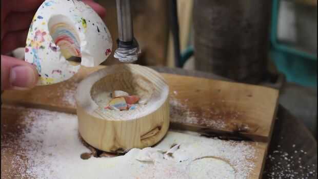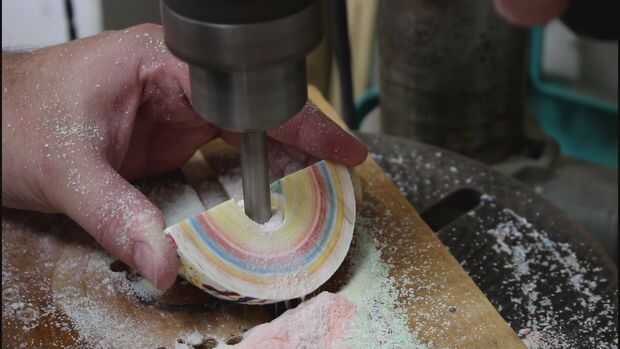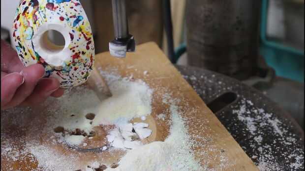 Único problema aquí es, perforación giant jawbreaker es difícil. Las virutas hacia fuera, rompe y grietas tan fácilmente que era incapaz de hacer un agujero limpio! Después de tres intentos y tres fallos sobre el primer pedazo de cuarto, decidí darle otra van en el segundo trimestre.