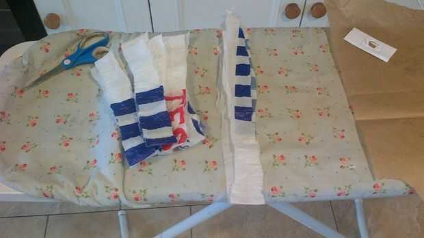 A continuación tome sus plantilla y tijeras y corte las tiras de las bolsas que son del mismo tamaño que la plantilla.