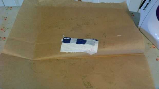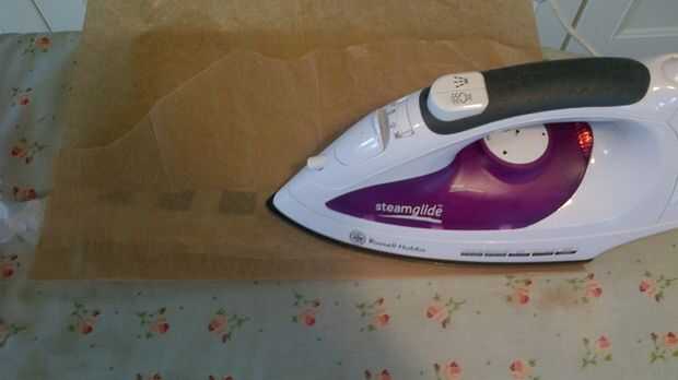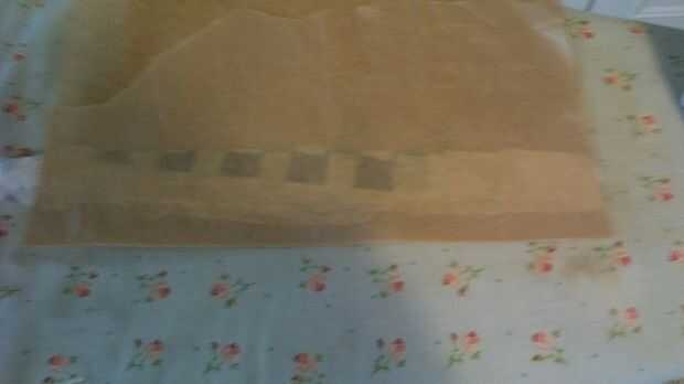En primer lugar tomar una tira de la bolsa de plástico y el pliegue en tiene, luego colocar en el papel parafinado y doble el papel parafinado sobre la plancha. Repita hasta que quede del mismo tamaño que la plantilla.