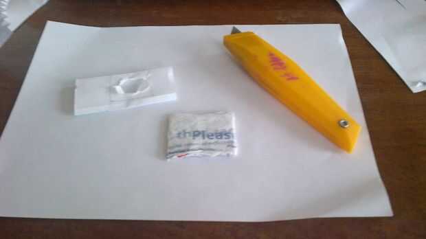 En este paso hará que el agujero para el dedo. Lo hice marcando el agujero, sacar el tamaño utilizando la plantilla cortando entonces. Probablemente podría utilizar un taladro en su lugar. Luego cortar los bordes a su tamaño deseado y pulir los bordes del agujero.
