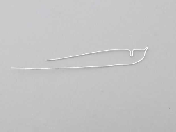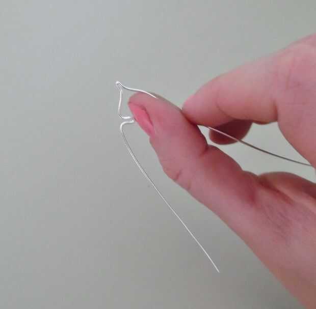 Coge otra vez la derecha del alambre y dóblelo hacia abajo con el pulgar, utilizando el pulgar para ayudar a dar forma a la cola de la ballena.
