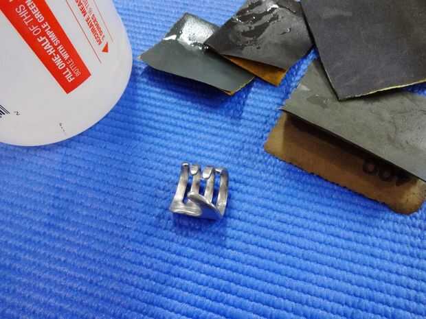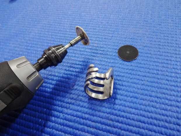 El anillo fue luego lijar con distintos grados de discos de lija con mi herramienta rotatoria, hasta unos 220.