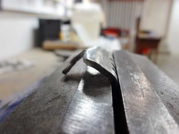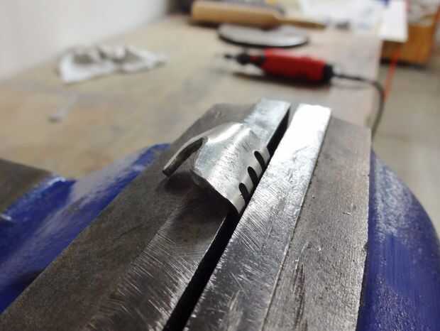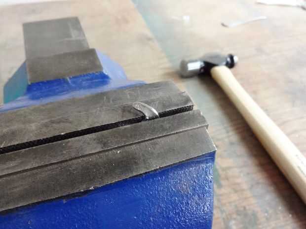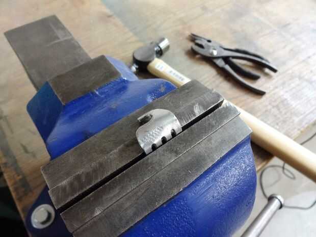 Pellizca la horquilla en la prensa, había golpeado con el martillo un poco, subió la horquilla solo un poco y repitió el proceso.