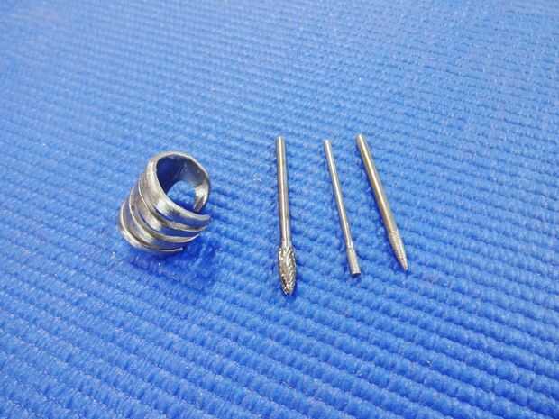 Comenzó con una talla poco para eliminar parte del material de carburo y luego se trasladó a un par de brocas de diamante para suavizar las cosas. Mientras hacía esta parte, tenía el anillo en el par de alicates de prensa mostrados anteriormente.