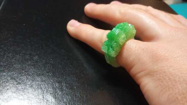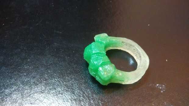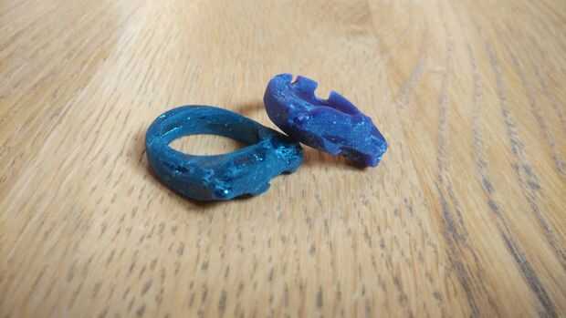 Hice estos para mi pareja. El anillo verde es apoyo para parecerse a cristales de crecimiento natural. Los anillos azules y púrpuras fueron los intentos de mi puño y tiene un diseño de delfín.
