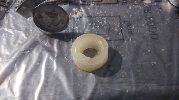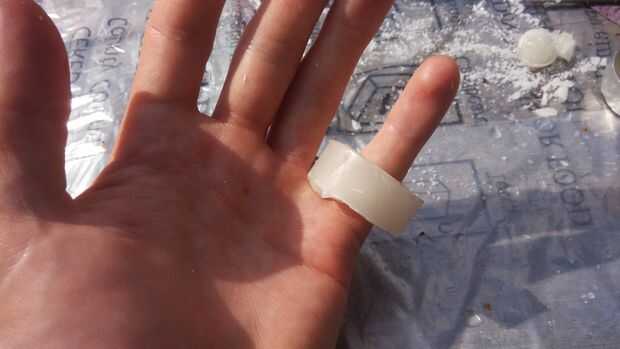 El anillo de cera ahora puede cortar y lijar a una forma de anillo más uniforme. Esto puede ayudar al tallar el diseño.