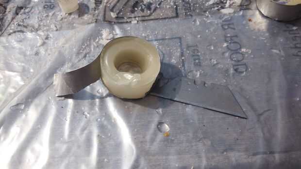 De lo contrario use la hoja de afeitar suavemente el caso alrededor de la vela y pelar apagado. El caso rasgado para arriba puede ser desechado.