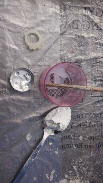 Coloque el anillo de Coz y el resto de la oogoo en el té la luz cubierta. Asegúrese de que el anillo está cubierto completamente con oogoo. Asegúrese de que tenga cuidado con el anillo de cera ya romper ahora sería catostrophic.
