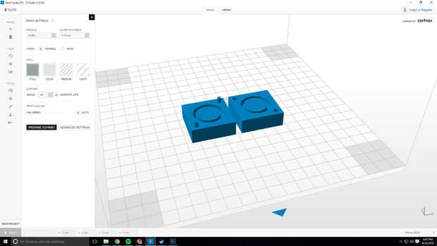 Usted tendrá que imprimir dos archivos de parte de este proyecto. Encuentra el tamaño de su anillo de la "Cavidad de ventilación" y la "Cavidad inyectar". Mi configuración de impresión puede verse en la imagen adjunta y es las siguientes:
