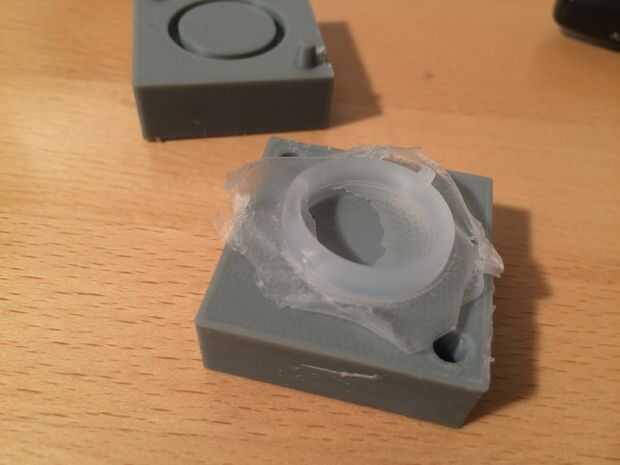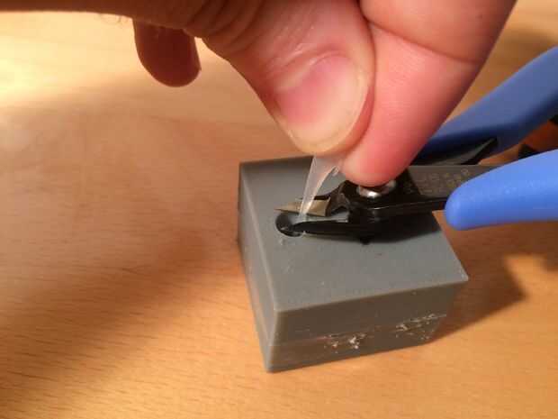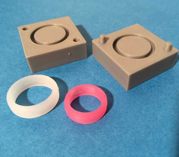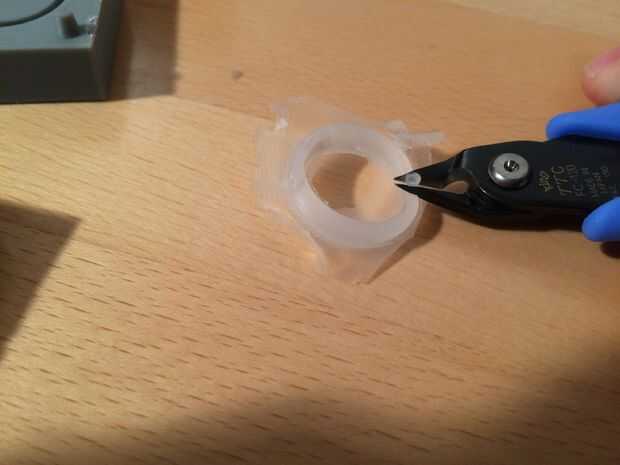En el puerto de inyección, tome algunas de la silicona, para arriba y corte la globalización externa que cura en el embudo de la inyección. Esto le impedirá saqueando el anillo de una manera fea cuando se separan las cavidades del molde.