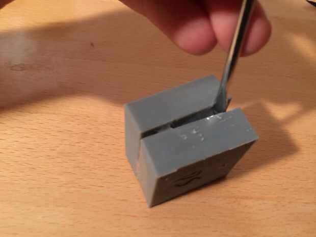 A continuación, haga palanca en las cavidades del molde apartes con un destornillador pequeño. Usted verá un montón de flash alrededor del anillo (flash = involuntario plástico curado en molde línea de partición). No te preocupes todavía, simplemente tire del anillo del molde. La silicona es resistente, sin necesidad de ser suave. Una vez fuera del molde, recortar el puerto de ventilación.