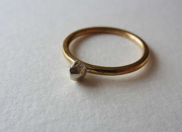 Anillo de latón con pepita de plata (10 / 10 paso)
