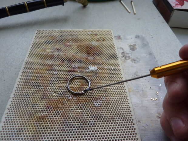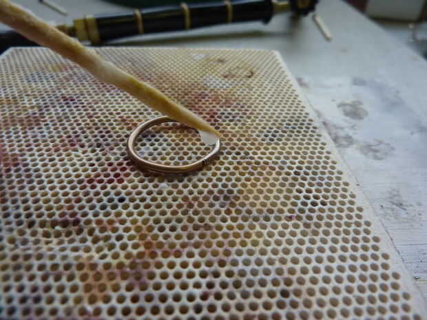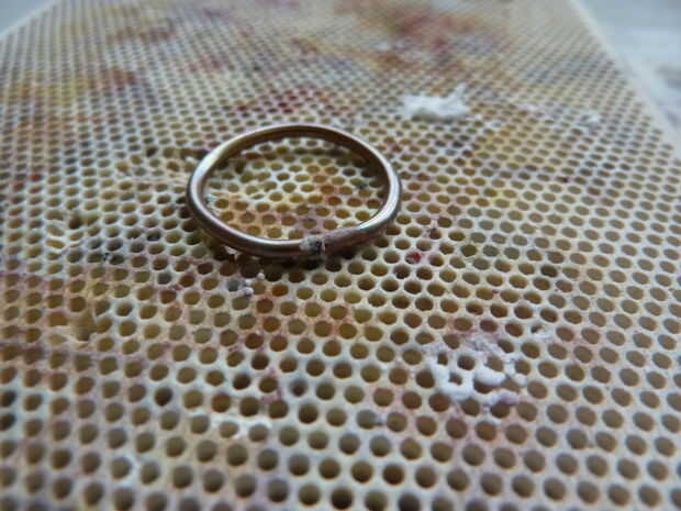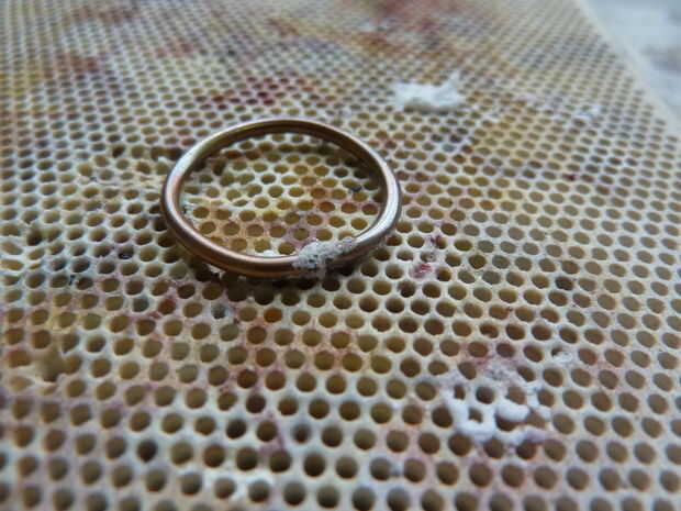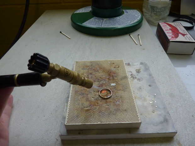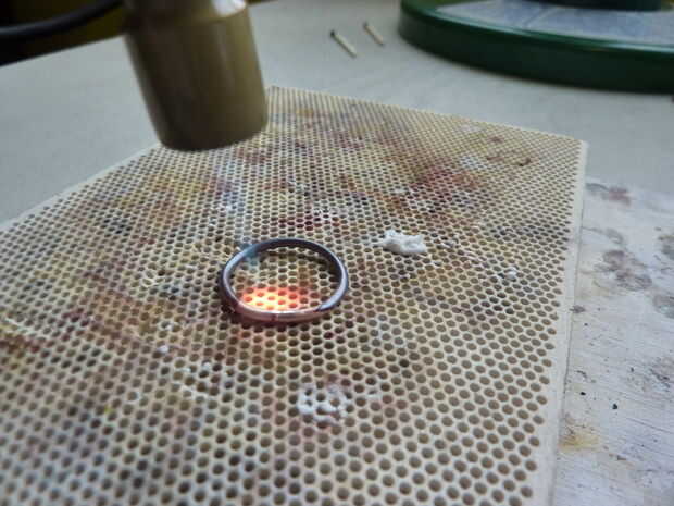5 - calentar el anillo constantemente, haciendo círculos. No es necesario centrarse sólo en la parte de soldadura, el anillo entero debe permanecer caliente.