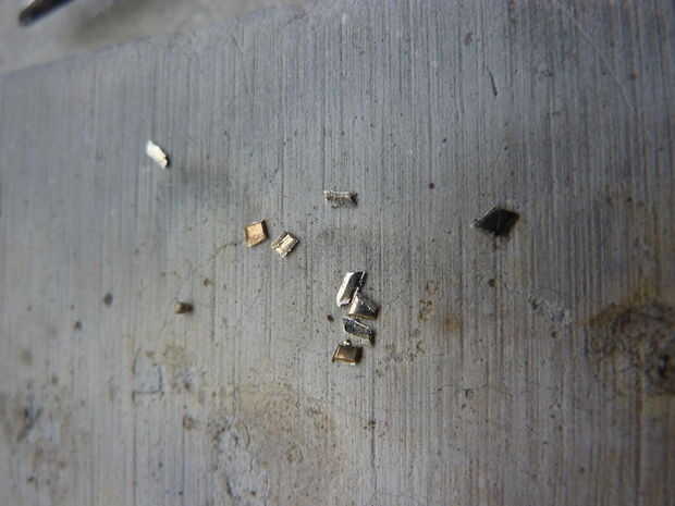 1-cortar pequeños cuadrados de la plata medio de soldadura. Uso medio porque cuando se le agrega la pepita, se recalienta el anillo y no quieres fundir este estaño. En ese momento, utilizarás la soldadura fácil.