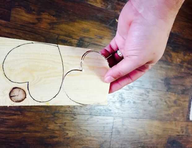Con madera de palet, dibujó un corazón y recórtalo. Puede preparar su corazón lijando los bordes ásperos.