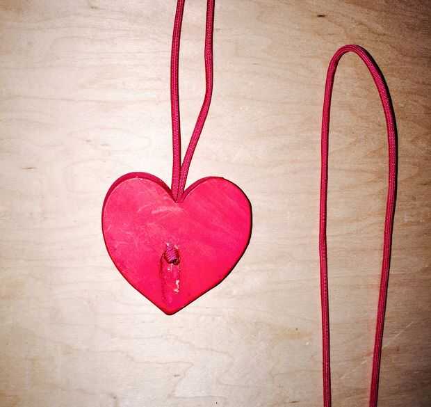 Uso de paracord hilo el grano en forma de corazón. Cuanto más grande el cuadro, el paracord más se necesita. Usé unos 3 pies.