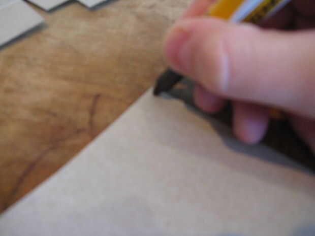 primero Marque un punto en cada esquina con el marcador de unos 5mm de la esquina y "excavar" con un cuchillo.