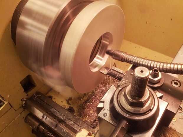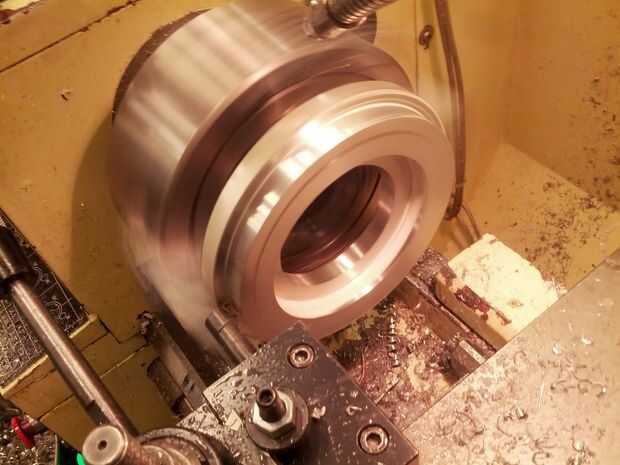 Foto 2 me muestra girando por el exterior. Para herramientas, usé la misma Barra aburrida. Sólo lo al revés movido de un tirón y corrió el torno en reversa.