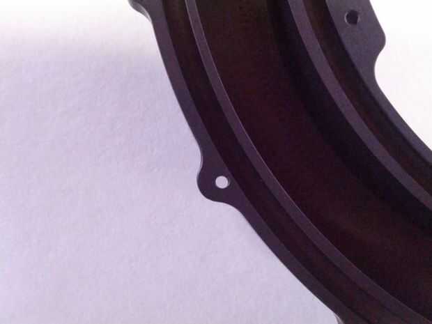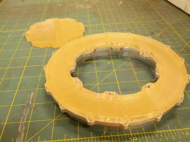 Cuadro 4 es de la segunda de mis tres anillos de luz. Algo atento a si usas el Tormach--pulsar el botón "stop" hace que la máquina pierda sus ejes. Por lo tanto, los agujeros y las bridas son de dos ejes diferentes en esta parte. Así, aprendí a detener la máquina con la tecla "pausa"...