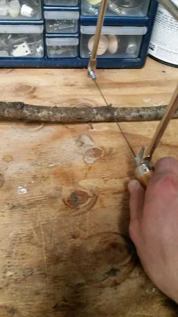 1. corte un pedazo sobre todo recto de la madera. preferentemente con menos ramas que crecen fuera de ella para evitar nudos. Aunque me las arreglé para conseguir una gran en el rostro de mi anillo y amarla.