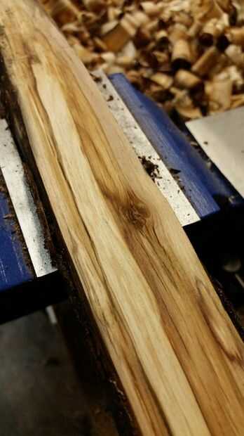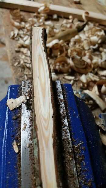 3. Cepille el piso de madera. Usé un bloque plano y un plano del dedo meñique. ambos stanley.doesn't la materia. En este punto, deseo que tenía un cuchillo de sorteo. Si tienes un cuchillo dibujar, entonces sabrás qué hacer. Un spokeshave también habría estado bien. Pero, para mí, sólo usé un cuchillo y algunos aviones pequeños, porque eso es lo que tengo.